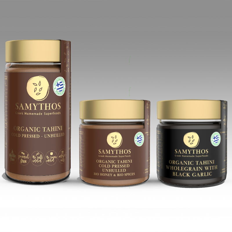 Set of our 3 products- Organic Tahini Wholegrain - Unhulled - Cold Pressed with Organic Raw Honey and Spices (200 gr)- Organic Tahini Wholegrain - Unhulled - Cold Pressed(300 gr)- Organic Tahini Wholegrain with Black Garlic(200 gr)